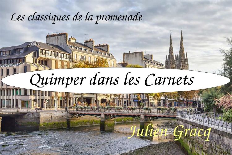 De 37 à 39, Gracq enseigne à Quimper, parcourt ses rues plusieurs fois par jour entre son hôtel et le lycée. La ville « soleilleuse et mouillée » prend forme dès le matin sous le regard incisif du jeune marcheur depuis les pentes du mont Frugy jusqu’aux « banquettes de tangue (1) grise ». Avec les souvenirs du vieil homme, la vue, floutée de rêve, s’élargit ensuite sur l’estuaire de l’Odet où coule et se disperse la ville jusqu’à ses « châteaux perdus »