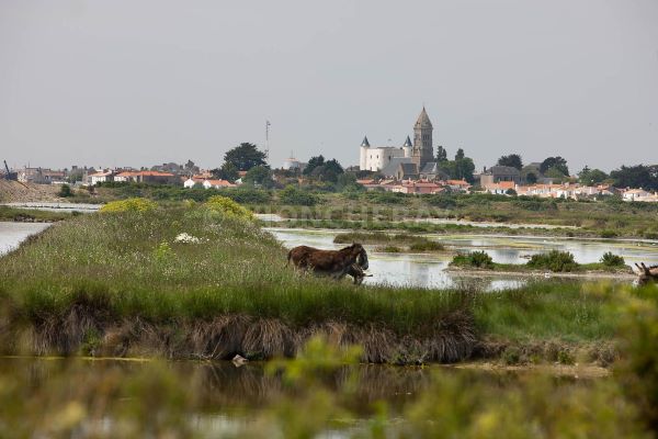 Mais je n’ai pas loué la villa des Glaïeuls. Ma maison, rustique et sans piano, s’adosse au bois : une allée quadrangulaire de chênes géants en délimite l’enclos. Le jardin herbu est plein de fleurs, les arbres fruitiers ploient jusqu’à terre leurs branches chargés de la bonne moisson automnale. Le mimosa, le grenadier, l’eucalyptus et le laurier-rose y poussent aussi forts, aussi parfumés, que sous les ciels du Midi. Entre les ramures des chênes, j’aperçois, devant moi, une plaine que paissent les troupeaux de vaches et les petits ânes vagabonds et gais, une plaine que ferme Noirmoutier avec le clocher blanc de son église, et les tours de son vieux château. Puis ce sont des fermes aux murs éclatants, peints à la chaux, aux toits plats et roses, puis des moulins à vent qui tournent, dans le ciel, leurs croix démentes. A gauche, encore une plaine, d’une admirable mélancolie, semée de barges de sel. Des bras de mer s’y enfoncent, l’enlacent, l’étouffent de leur irrésistible étreinte. Et par delà une large bande de terre, au loin, le grand large, sombre, terrible, mystérieux, qui semble descendre sur nous au galop de ses vagues chevauchantes.